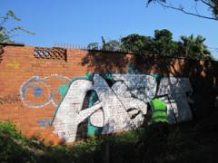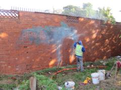Graffiti Tags being removed from a face brick wall by G.R.S
