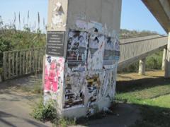Fly paper posters and glue removed from concrete bridge by G.R.S