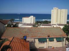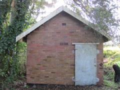 Graffiti SAC shield on sandstone tile, treatment on left part |
