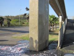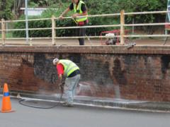 Fly paper posters and glue removed from concrete bridge by G.R.S