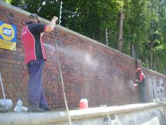 Graffiti Tags being removed from face brick wall by G.R.S
