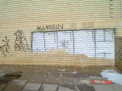 Final stage in removing Solid Graffiti Tag from facebrick by G.R.S