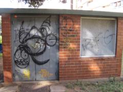Graffiti Tags removed from door and face brick by G.R.S