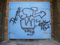 Graffiti Tags removed from blue painted door by G.R.S
